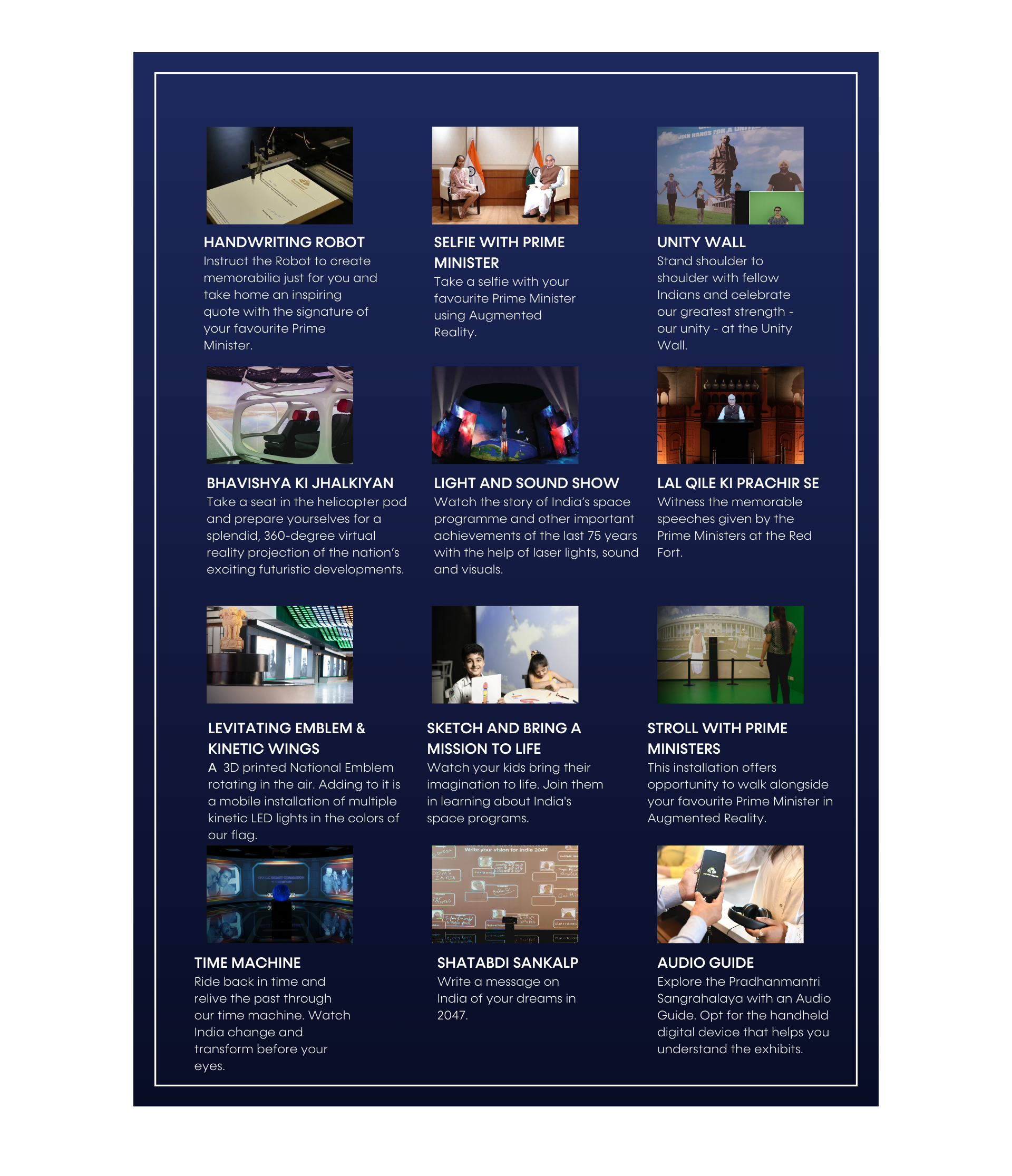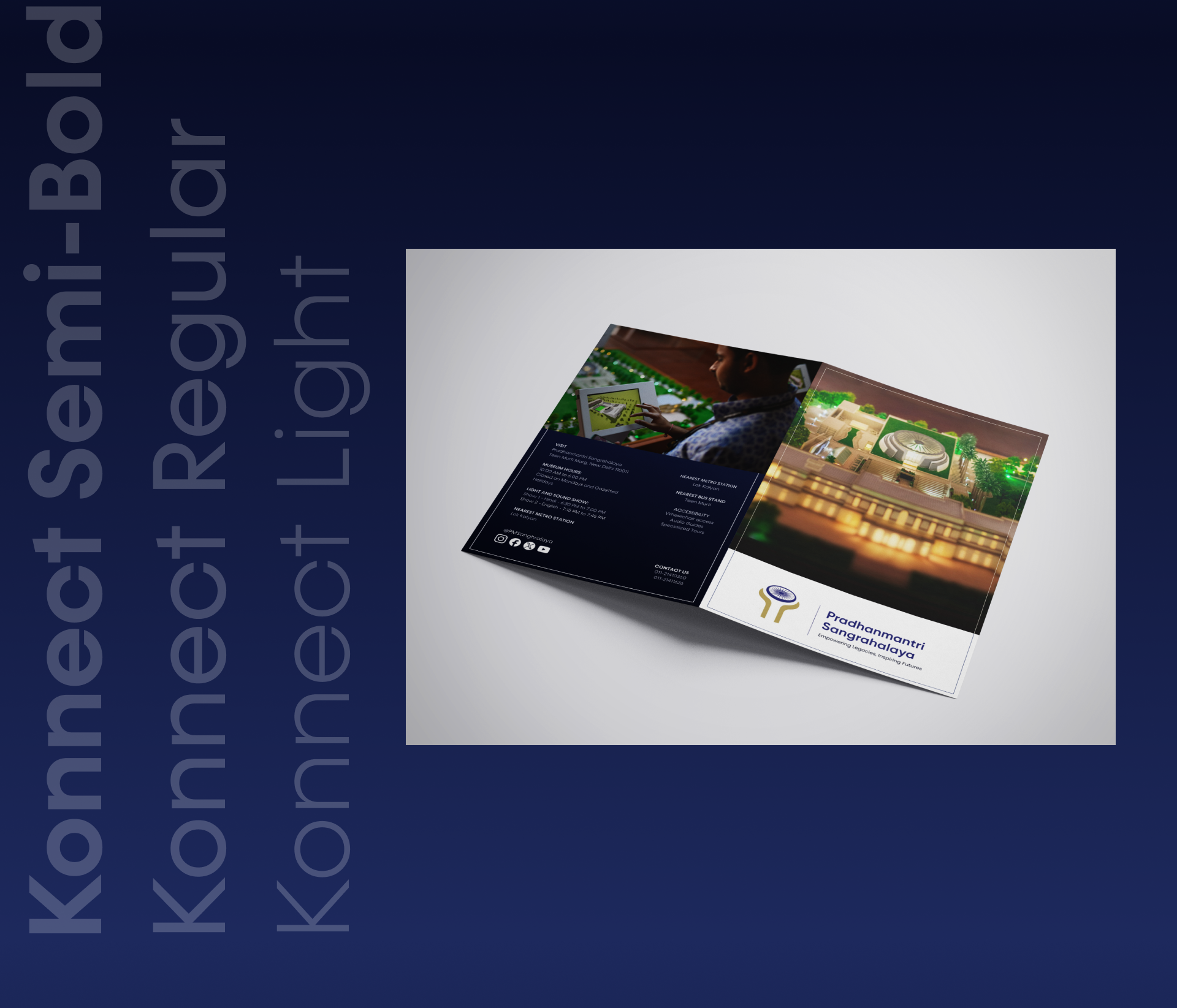 This brochure design for the state-of-the-art Pradhanmantri Sangralaya museum in New Delhi reflects the museum's brand identity: formal, minimalist, and informative. By aligning design elements with the museum's values, I created a brochure that is not only aesthetically pleasing but also user-friendly and highly informative for visitors.